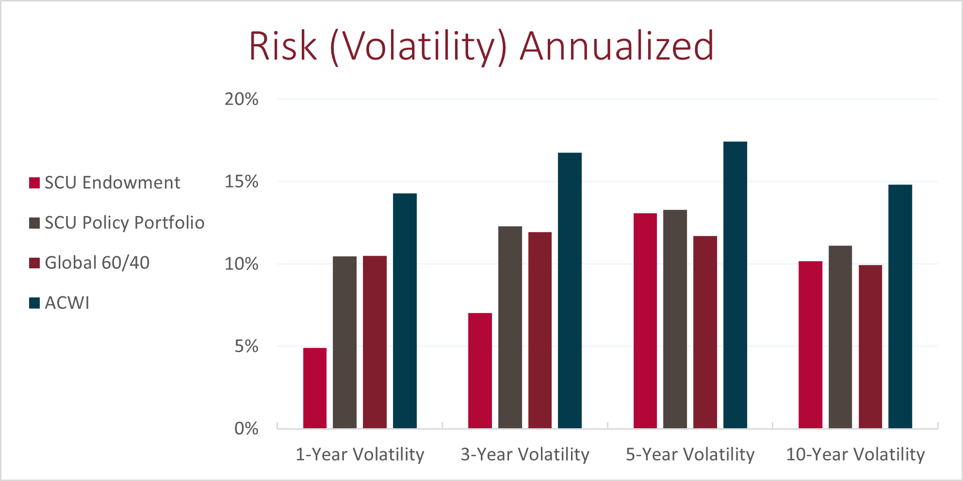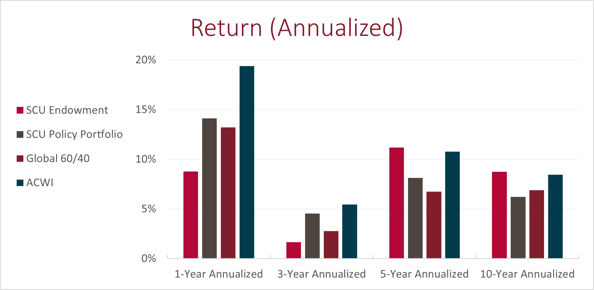 As stewards of the University’s endowment, the Santa Clara Investment Office manages a diversified investment portfolio that provides recurring financial support for key university operations. The goal is to generate sufficient investment returns so that the portfolio can serve both the needs of current and future generations of university stakeholders. We refer to this as “intergenerational equity.”
